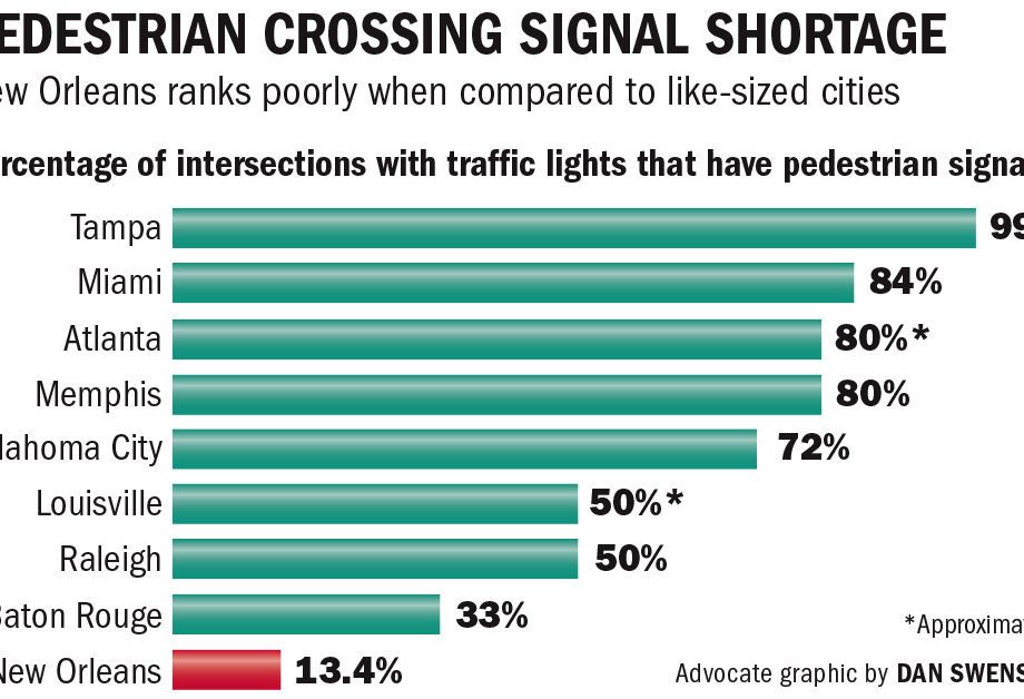 Blown red lights don’t represent biggest danger for pedestrians in New Orleans, report says